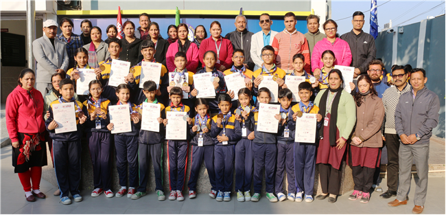 An award ceremony was organised during the School Assembly to felicitate the students who won medals and certificates in the JU-JITSU Tournament. The atmosphere was filled with pride as the achievers were honoured on stage for their hard work, dedication, and remarkable performance. Their success served as an inspiration for the entire school community, encouraging other students to pursue excellence in sports and co-curricular activities.
