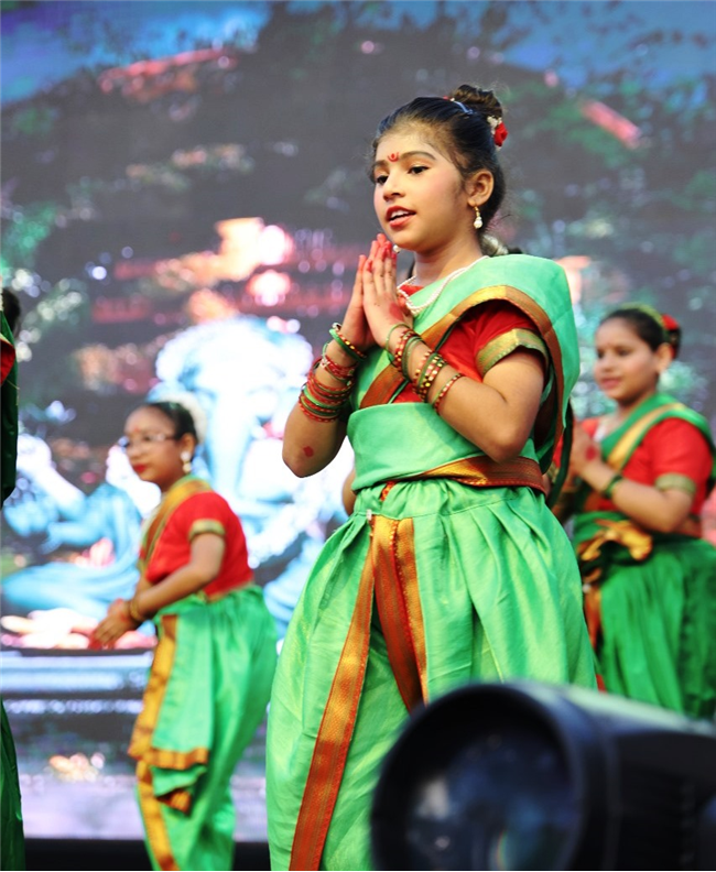 The Annual Function Aarangam 2.0 commenced with a soulful Ganesh Vandana presented by the talented students of the school. The performance was a beautiful blend of devotion and grace, invoking the blessings of Lord Ganesha — the remover of obstacles and the harbinger of wisdom and prosperity. Dressed in vibrant traditional attire, the students mesmerized the audience with their expressive movements and rhythmic synchronization. The serene atmosphere created by the Vandana set the perfect spiritual tone for the evening, marking an auspicious beginning to the grand celebration of Aarangam 2.0.