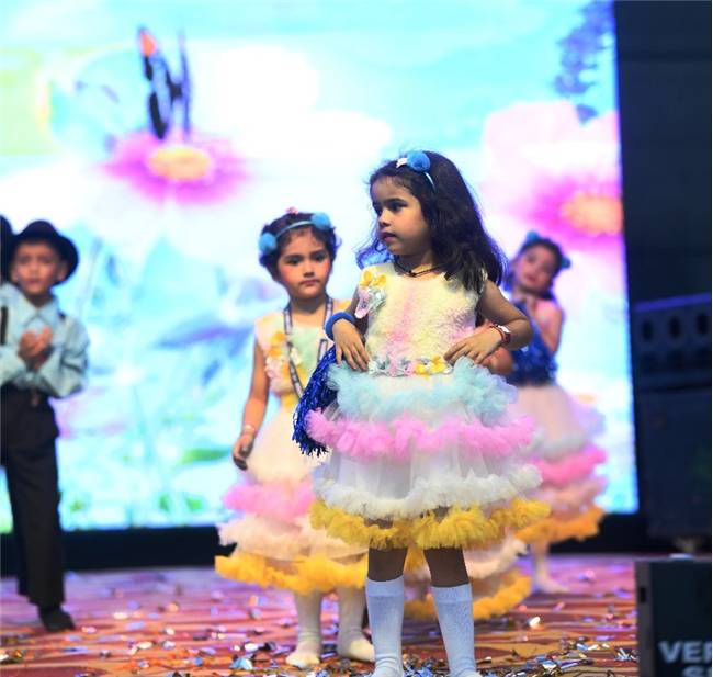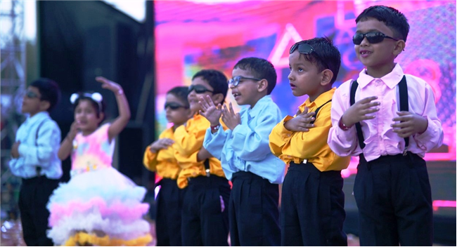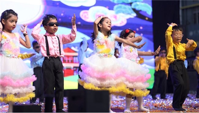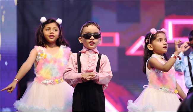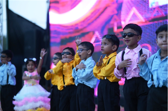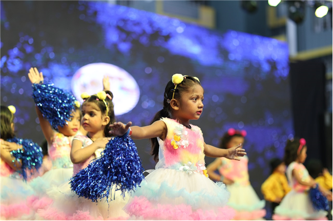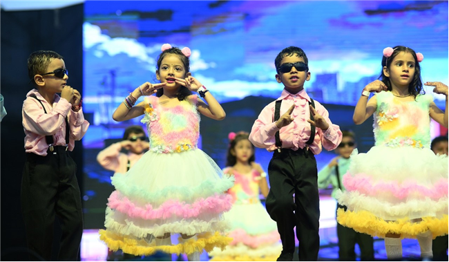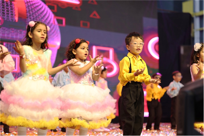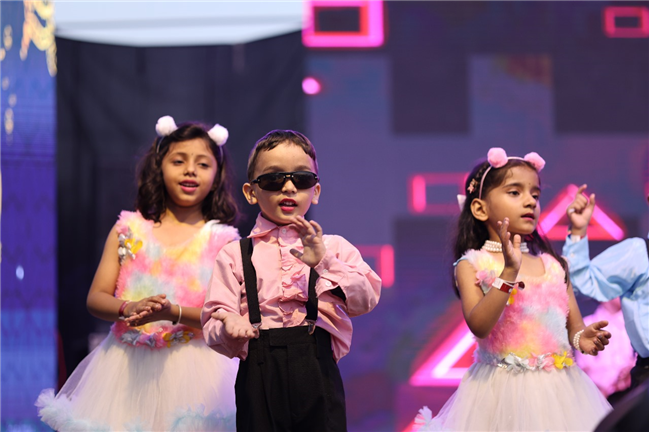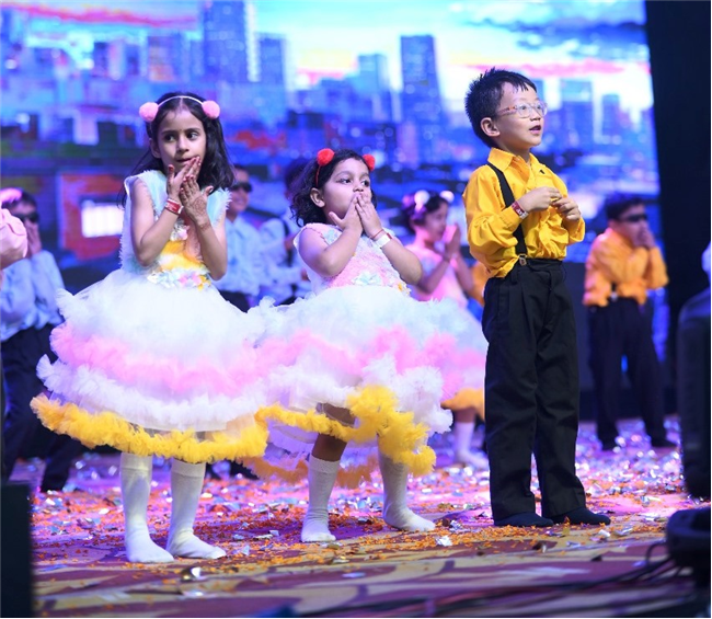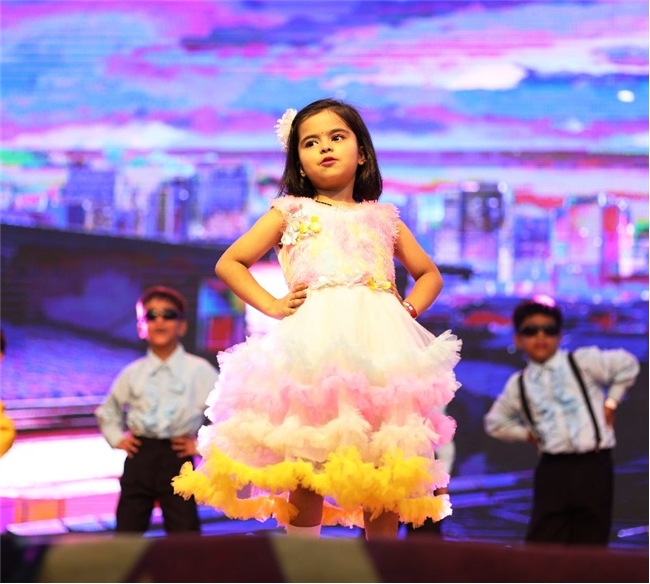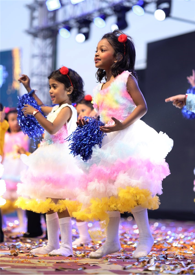 The students of Class Nursery, LKG, and UKG presented a delightful Bollywood Dance performance on the occasion of the Annual Function of Cynthia School – Aarangam 2.0. The young performers, dressed in vibrant costumes, showcased their enthusiasm and confidence as they danced to lively Bollywood tunes. Their energetic moves and innocent expressions filled the auditorium with joy and applause from the audience. The performance not only reflected the children’s talent and coordination but also highlighted the dedicated efforts of their teachers in preparing them for this captivating show.