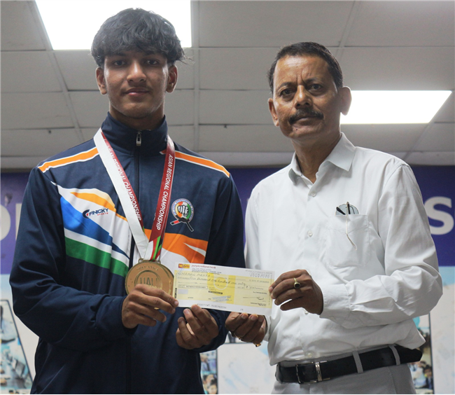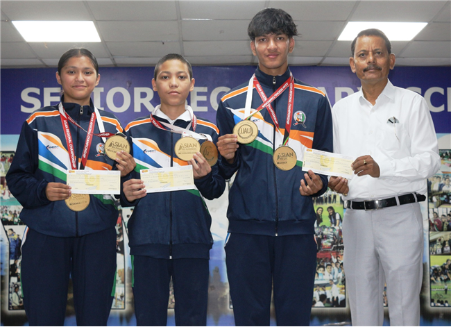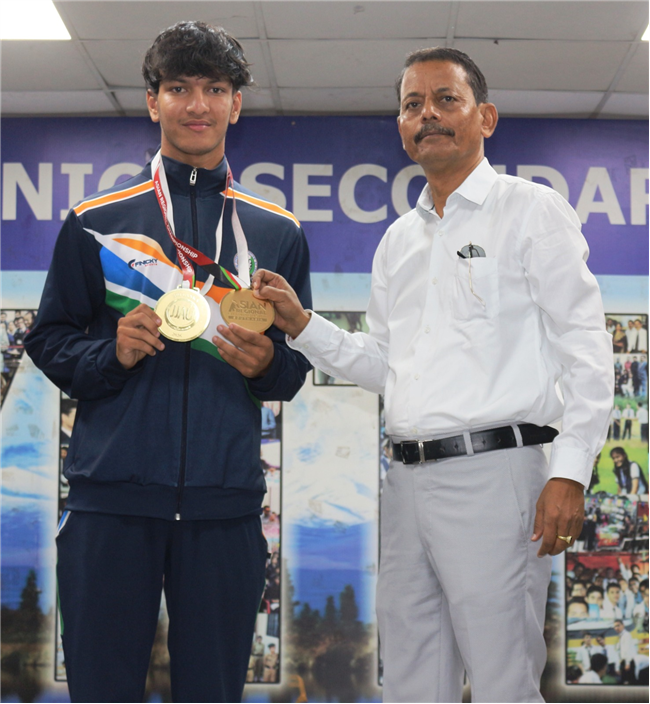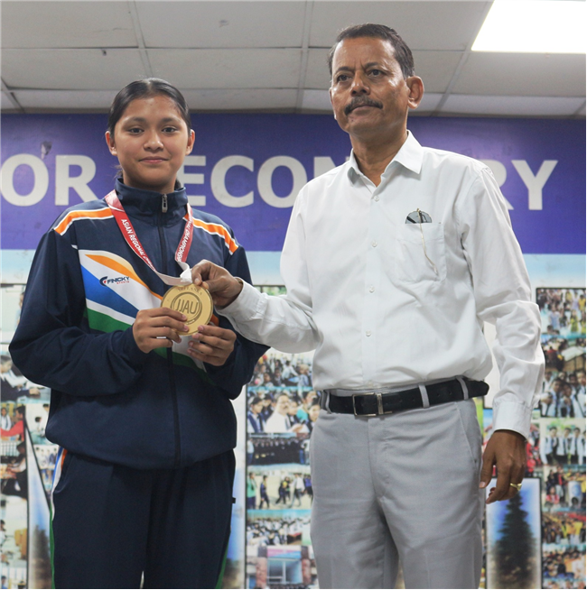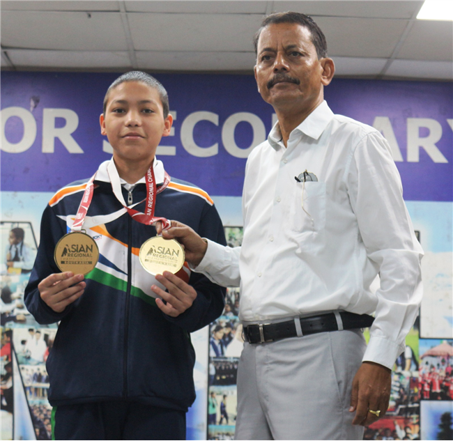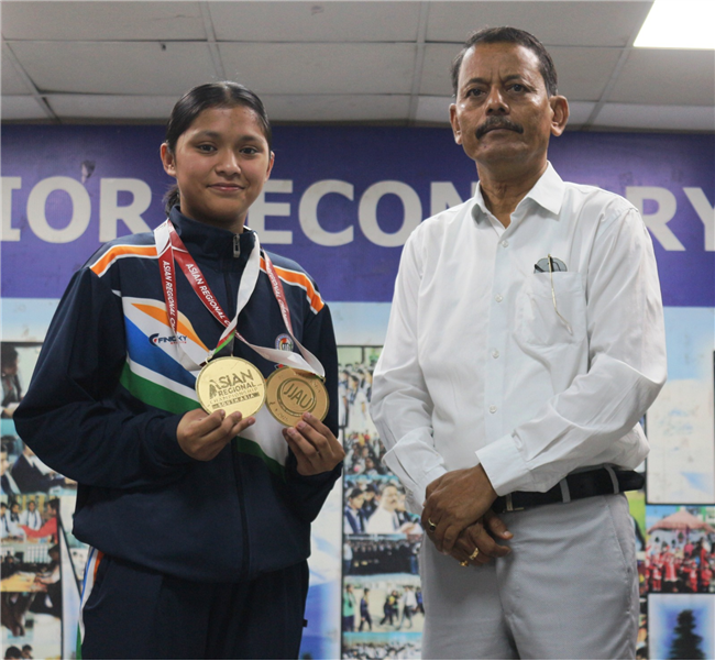 An Award Ceremony was proudly organised in the School Auditorium to honour the outstanding achievements of our young Ju-jitsu champions who brought laurels to the school at the international level. The event celebrated the remarkable success of Riddhima Negi, Avighna Negi, and Naman Mehra, who represented the school at the Ju-jitsu Championship held in Colombo, Sri Lanka. Demonstrating exceptional skill, determination, and sportsmanship, each of the three students secured two Gold Medals in the Fighting and Newaza categories under different divisions. Their stellar performance not only highlights their dedication towards the sport but also reflects the school’s commitment to nurturing excellence in both academics and co-curricular activities. The ceremony was filled with pride and applause as the achievers were felicitated for their inspiring accomplishments.