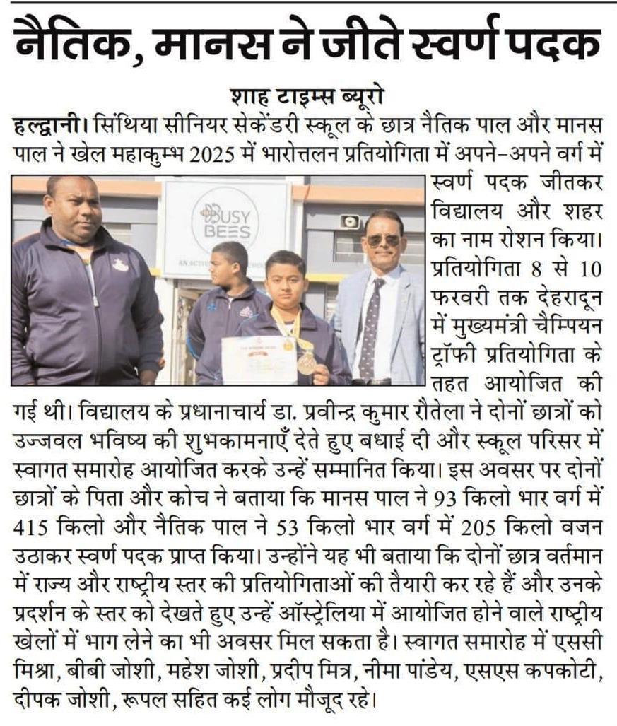 Naitik and Manas have brought great pride to Cynthia School by winning medals in Weight Lifting. Their achievement is a true reflection of their strength, determination, and disciplined training. Through consistent practice and unwavering focus, they demonstrated exceptional performance and sportsmanship in the competition. Their success not only highlights their personal dedication but also inspires fellow students to pursue excellence in sports alongside academics. Cynthia School congratulates Naitik and Manas on this remarkable accomplishment and wishes them continued success in their future endeavors.